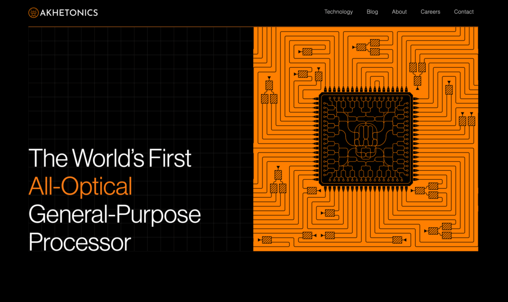 Akhetonics’ core technology is centered around its fully optical digital processor, which uses photonics to perform computation and data storage. Unlike conventional systems that rely on electrons and electronic circuits, Akhetonics leverages light to achieve unparalleled processing speeds, deterministic timing, and dramatically reduced energy consumption. Their architecture bypasses the limitations of the von Neumann bottleneck by integrating digital control flow and analog acceleration in a unified optical framework. This design allows for real-time, energy-efficient processing ideal for compute-intensive tasks, such as AI workloads and dual-use applications, while maintaining high scalability and versatility for general-purpose computing.