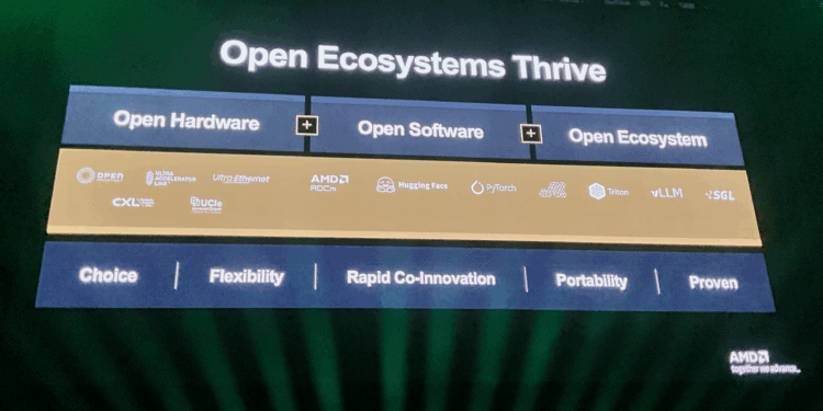 AMD’s open philosophy is embodied in its ROCm software stack, open interconnects, and Helios rack reference design, all built on OCP-aligned standards. Papermaster highlighted AMD’s leadership in multiple open consortia including UALink (scale-up), Ultra Ethernet Consortium (scale-out), and Caliptra (confidential computing)—along with AMD’s ongoing collaboration with Intel on the x86 AI Advisory Group.
