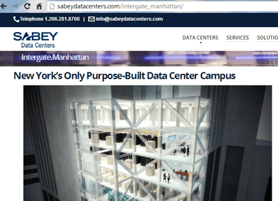 Sabey claims its 32-story Intergate.Manhattan facility is the most efficient data center in New York City, with brand new infrastructure and state-of-the-art climate control and electrical systems. The building’s Con Ed substation is on the second and third floors, eliminating a risk from storm surge damage that affected so many buildings in Lower Manhattan during Superstorm Sandy.