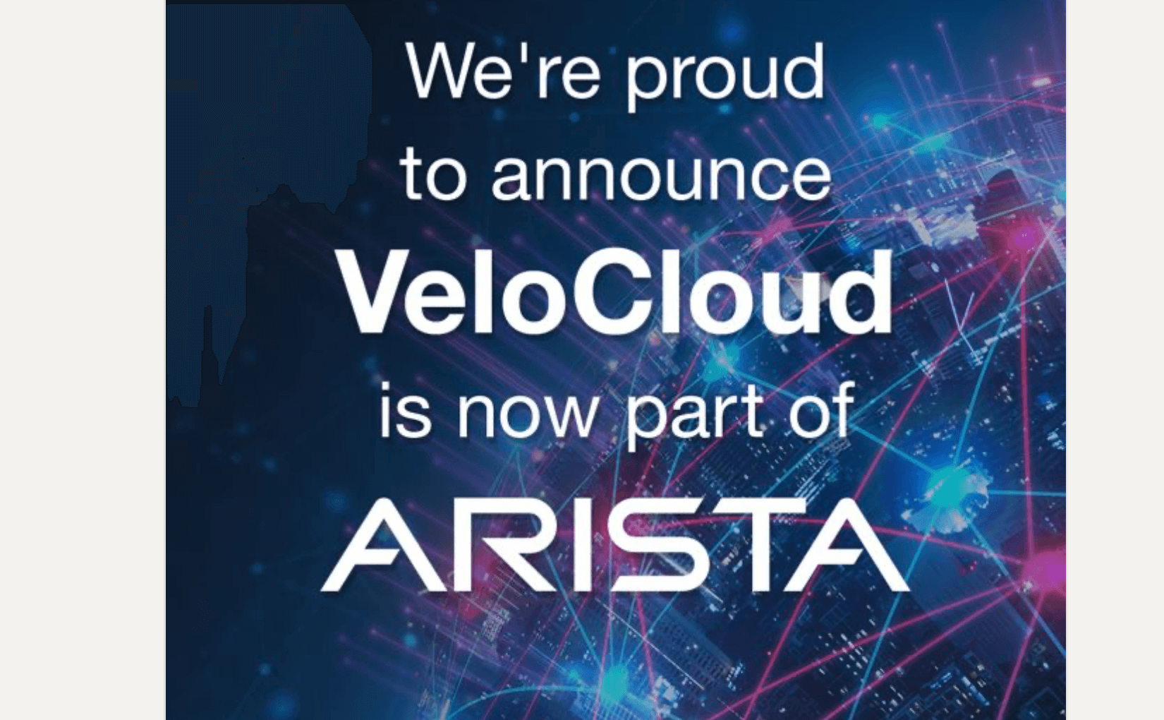- Arista acquires VeloCloud SD-WAN from Broadcom, adding secure WAN edge to its portfolio