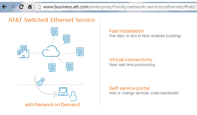 “Businesses want fast, versatile network service tailored to their needs,” said Josh Goodell, vice president, Network on Demand. “The rapid expansion of Network on Demand for AT&T Switched Ethernet Servicesm will provide customers improved network control and help them work more efficiently. We look forward to adding more services in 2015.”