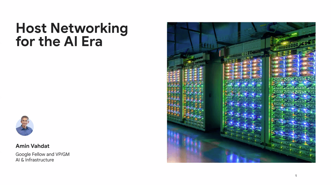 Vahdat traced the evolution of host networking from the Internet era, through distributed systems in data centers, to today’s AI era. Whereas TCP and best-effort delivery sufficed for wide-area connectivity, and RDMA supported storage and analytics clusters, AI workloads now demand ultra-low latency (tens of microseconds), synchronized bursts at line rate, and near-perfect predictability. In large-scale training runs, the 100th percentile tail latency—not the median—dictates job completion. If even a single node or link lags, the entire training run can stall.
