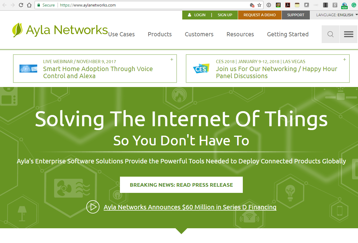 “Ayla has amassed more than 100 large enterprise customers by solving their challenges regarding how to securely connect, manage and apply intelligence to all of their connected devices and sensors,” said David Friedman, Ayla CEO and co-founder. “The Ayla platform blends critical capabilities related to security, privacy, data policy and management with a massively configurable capability for our customers to ingest data from any sensor and IoT cloud. The platform makes it easier for enterprises to apply intelligence and analytics to broad sets of heterogeneous data sets to transform the data into real business value.”