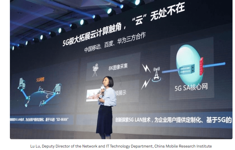China Mobile, Huawei, and Baidu showcased a 5G stand-alone technology delivering 8K video conferencing. At an event in Beijing, 8K live videos were collected, processed, and broadcast through the 5G SA architecture. These videos were also recorded with 8K cameras in real time and sent back to the 5G SA core network through 5G gNodeBs established by China Mobile in Beijing. After being quickly encoded and decoded by Baidu servers on the same network segment, the videos were sent back to the conference hotel for the 8K live video broadcast. The 5G network uses the 5G Vertical LAN technology to build a dedicated LAN where cameras, networks, and Baidu cloud servers are co-deployed.