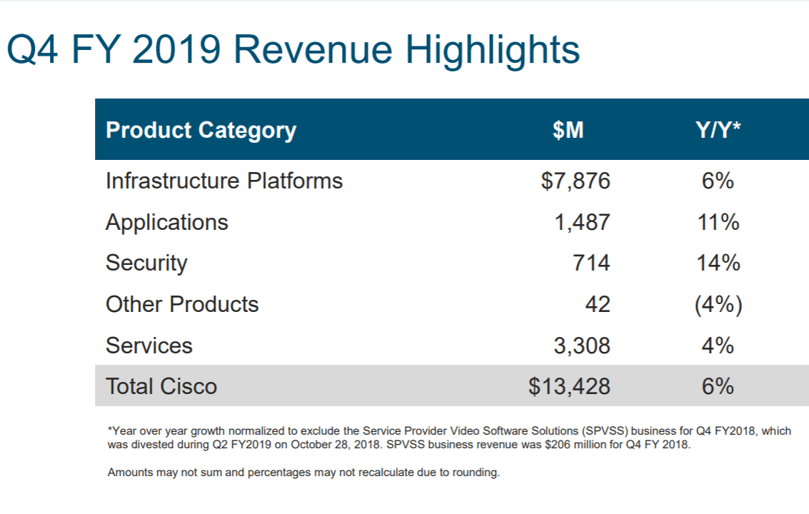 “Our Q4 results marked a strong end to a great year. We are executing well in a dynamic environment, delivering tremendous innovation across our portfolio and extending our market leadership,” said Chuck Robbins, chairman and CEO of Cisco. “We are committed to providing our customers ongoing value through differentiated solutions, and we are well positioned to take advantage of