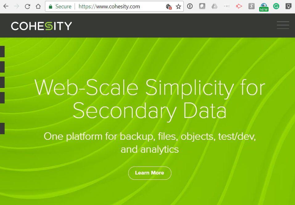 Cohesity specializes in hyperconverged secondary storage. Its hyperconverged appliance consolidates all secondary data and associated management functions on one unified solution, including backups, files, objects, test/dev copies, and analytics.