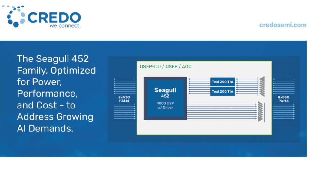 “With the massive growth of AI as predicted by the market forecasters, we see a tremendous opportunity to grow our footprint with customers, including hyperscalers, as the number of optical interfaces required to meet the AI workload flow will only continue to increase,” said Michael Girvan Lampe, Vice President of Worldwide Sales and Marketing at Credo. “Hyperscalers supporting AI applications will need to balance this growth demand for new levels of performance with capex and energy concerns. The Seagull 452 family of DSPs aims to help our customers balance these concerns while also benefitting from this growing market opportunity.”