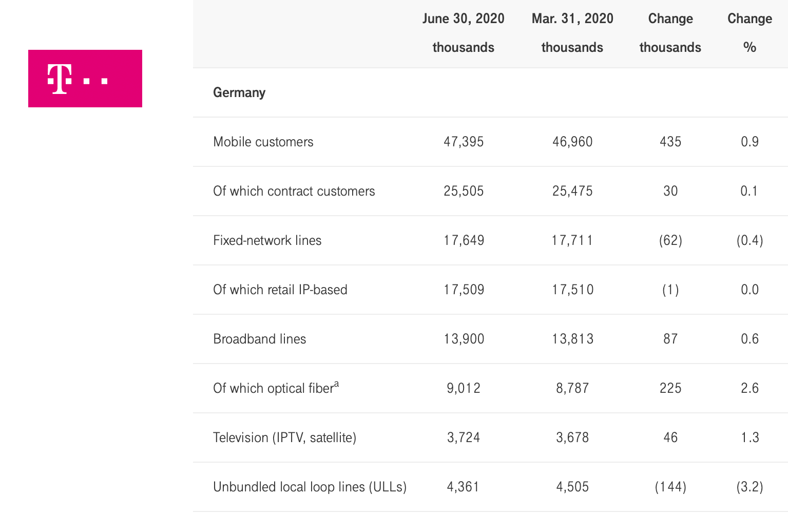 - In Germany, Deutsche Telekom recorded its most successful quarter in broadband business in two years, measured in terms of net customer additions.