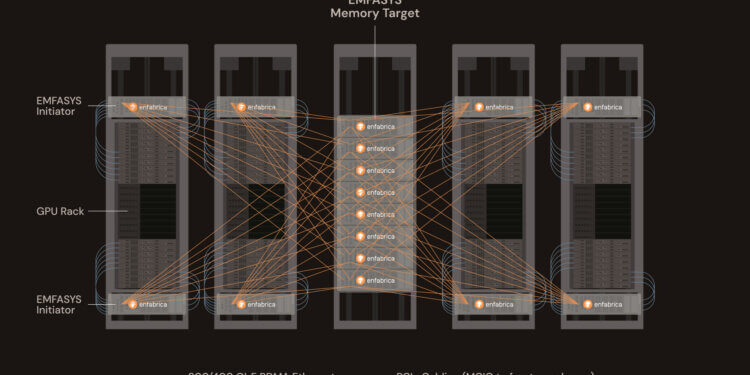 Enfabrica, a start-up based in Mountain View, California, introduced its Elastic Memory Fabric System (EMFASYS), a new hardware and software platform designed to solve memory bottlenecks in large-scale AI inference workloads. EMFASYS combines Remote Direct Memory Access (RDMA) Ethernet networking with ComputeExpressLink (CXL) DDR5 memory to provide pooled, rack-scale memory accessible by any GPU server over standard Ethernet ports.