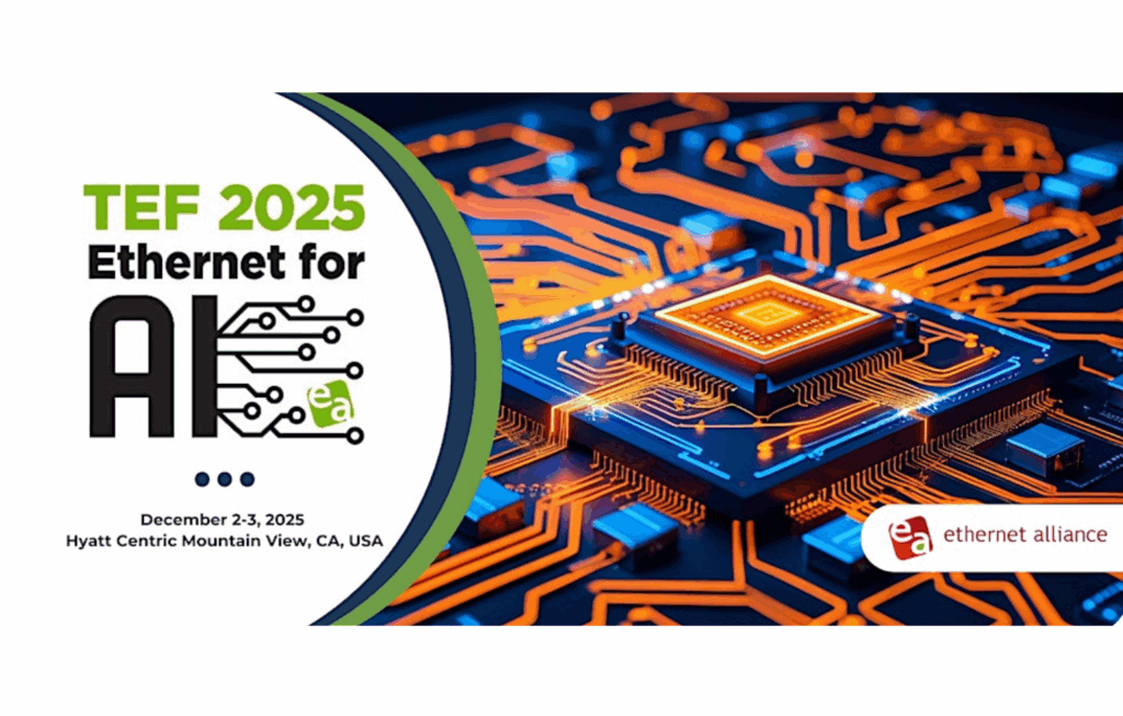 The Ethernet Alliance is bringing a deep bench of technical leaders to TEF 2025: Ethernet for AI, set for December 2–3 at the Hyatt Centric in Mountain View. The two-day forum centers on how Ethernet must adapt as AI workloads scale, with IEEE P802.3dj and emerging 400G/lane signaling poised to influence future AI data center design. With chipmakers, hyperscalers, and system vendors represented on stage, the event provides a real-time look at how the Ethernet ecosystem is aligning around the next decade of AI infrastructure.