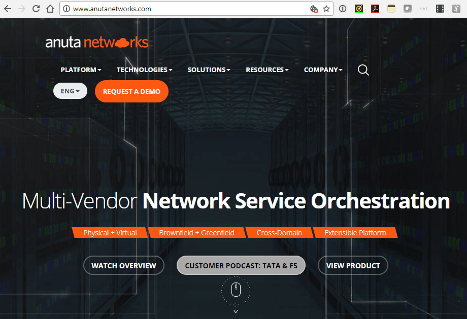 Anuta Networks enables multi-vendor network orchestration for branch, campus, data centre and service provider-managed enterprise networks. Its NCX network orchestration platform allows customers to automate and accelerate network services. NCX offers lifecycle service orchestration of physical, virtual and hybrid networks, allowing customers to leverage existing investments in infrastructure and transition to the software-defined networking (SDN)/network functions virtualisation (NFV) environments.