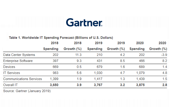 Gartner is predicting that worldwide IT spending will rise to $3.76 trillion in 2019, an increase of 3.2 percent from 2018.
