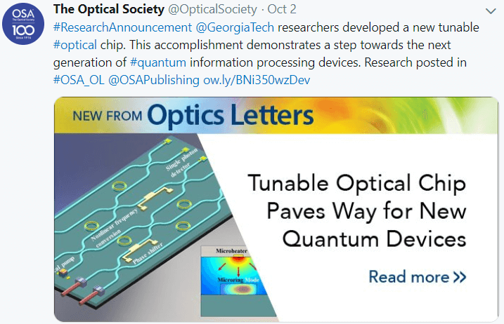Researchers at Georgia Tech have developed the first silicon carbide (SiC) photonic integrated chip that can be thermally tuned by applying an electric signal. The project involved the integration of a microheater and an optical device called a microring resonator onto a SiC chip, potentially paving the wave for a new class of quantum devices. SiC is known to have defects that can be optically controlled and manipulated as quantum bits, or qubits.