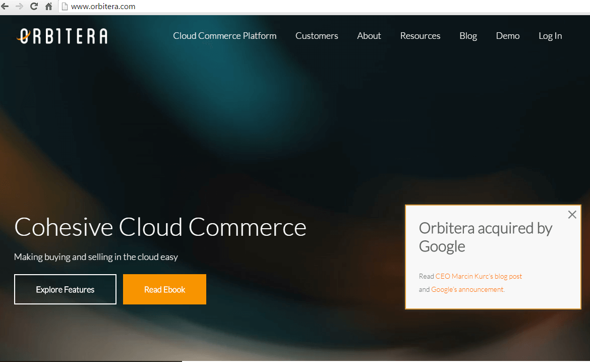 Google announced its acquisition of Orbitera, a start-up offering a commerce platform for buying and selling software in the cloud. Financial terms were not disclosed.