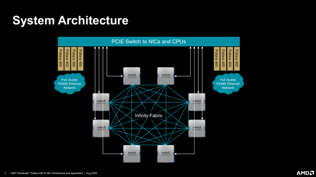 - Infinity Fabric redesign: 5.5 TBps die-to-die + 1,075 GBps GPU scale-up