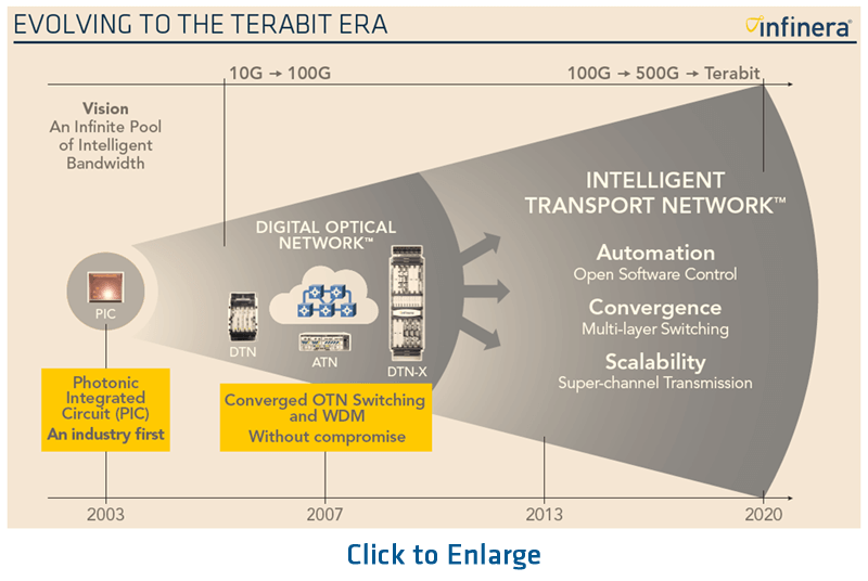 By leveraging these components, Infinera said its Intelligent Transport Network makes it easier for operators to automate the digital switching and the optical transport layers of their multi-terabit transport networks.