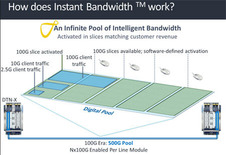 Infinera introduced an “Instant Bandwidth” capability that enables its DTN-X platform to provision capacity in 100G increments.
