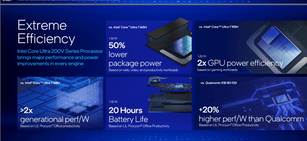The Core Ultra 200V series features Intel’s latest advancements in CPU, GPU, and neural processing unit (NPU) technologies. Intel says these processors are built for AI workloads efficiently, with up to 50% lower package power and a new Xe2 graphics microarchitecture offering a 30% performance uplift with up to 20 hours of battery life. Intel’s partnerships with software vendors and the broader ecosystem further enhance the capabilities of these new processors.