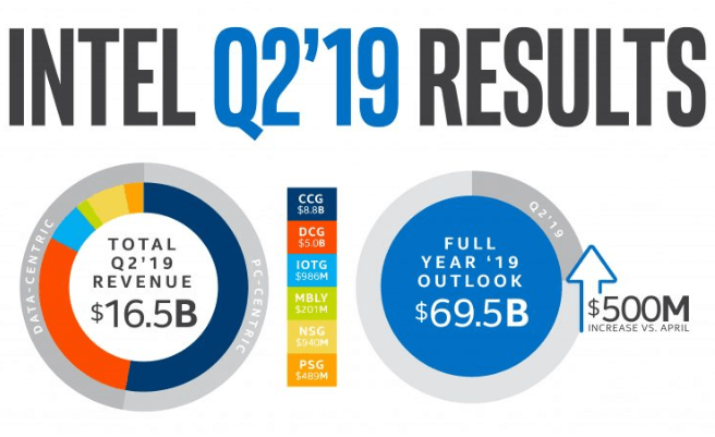 “Second quarter results exceeded our expectations on both revenue and earnings, as the growth of data and compute-intensive applications are driving customer demand for higher performance products in both our PC-centric and data-centric businesses,” said Bob Swan, Intel CEO. “Based on our outperformance in the quarter, we’re raising our full-year guidance. Intel’s ambitions are as big as ever, our collection of assets is unrivaled, and our transformation continues.”