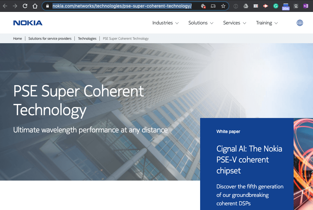 The DWDM deployment will leverage Nokia’s fifth generation PSE-V super-coherent (PSE-Vs) chipset to support programmable line rates up to 600G. The Nokia PSE-V Super Coherent DSP implements second generation probabilistic constellation shaping (PCS) with continuous baud rate adjustment, and supports higher wavelength capacities over longer distances – including support for 400G over any distance – over spectrally efficient 100GHz WDM channels while further reducing network costs and power consumption per bit.