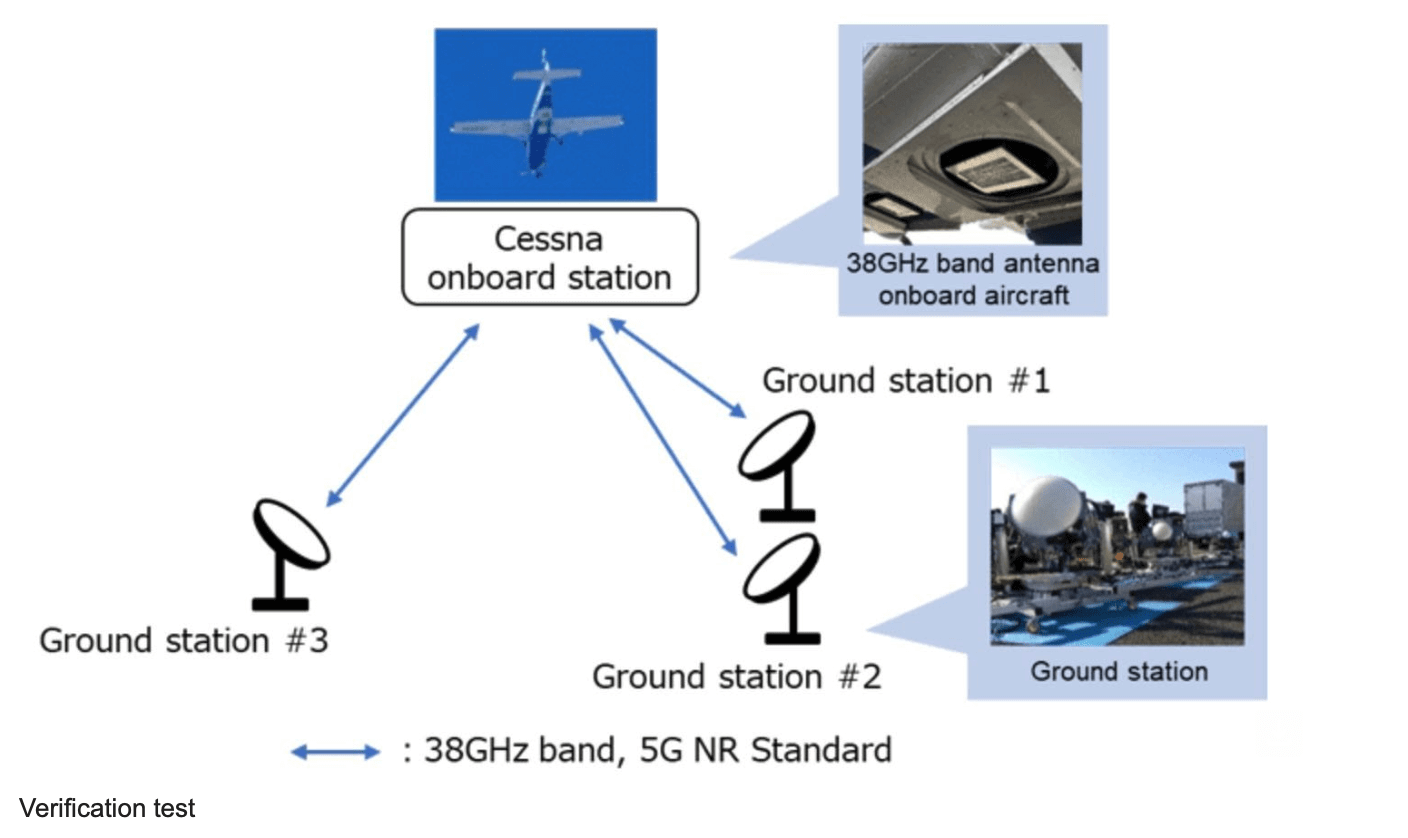 The trial established an aerial relay backhaul line between the Cessna aircraft, flying at altitude of approximately 4km, and three ground stations, using the 5G New Radio (NR) standard with 38GHz band radio waves, which is a novel approach for terrestrial 5G networks. The achievement of multiple backhaul line consisting of aerial relays using the 5G NR standard with 38GHz band radio waves was a world first in telecommunication technology.