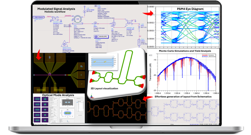 • Enables pre-fabrication verification against modulation standards and foundry-specific PDK alignment.