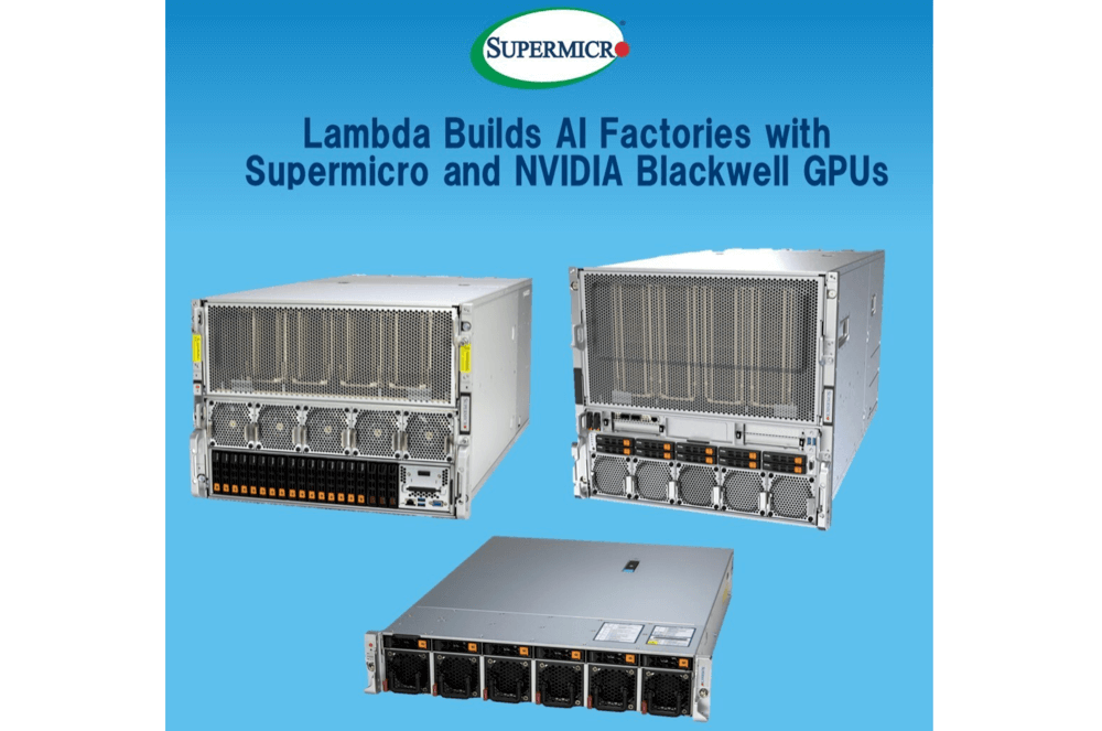 • Lambda deployed Supermicro’s GPU-optimized servers with NVIDIA Blackwell GPUs for AI factory-scale training and inference.