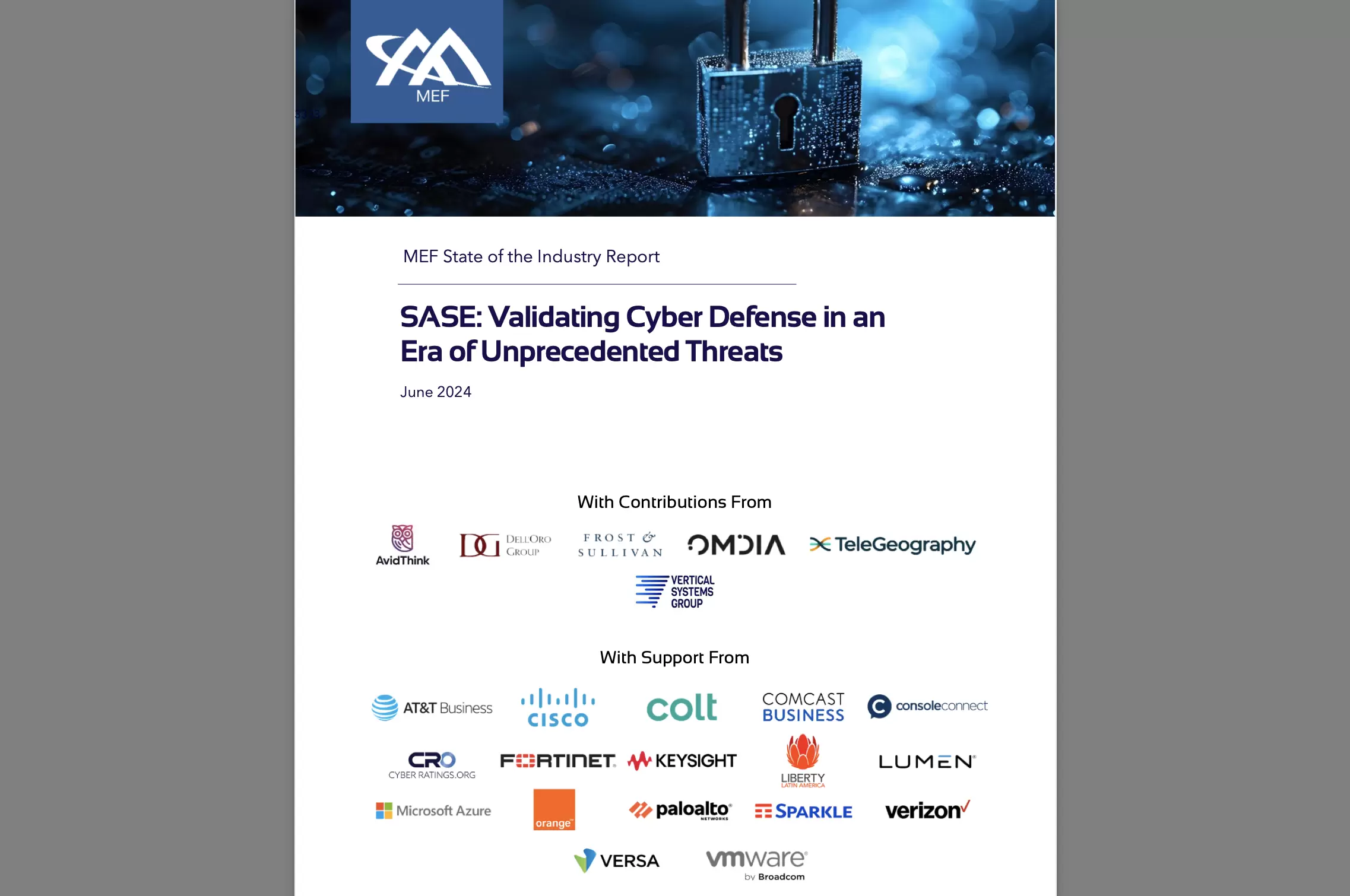 “State of the Industry Report: SASE – Validating Cyber Defense in an Era of Unprecedented Threats” explains how enterprise networking and cybersecurity decisionmakers can utilize MEF standards-based SASE certification to choose the best solutions with validated cyber defense effectiveness and application performance.