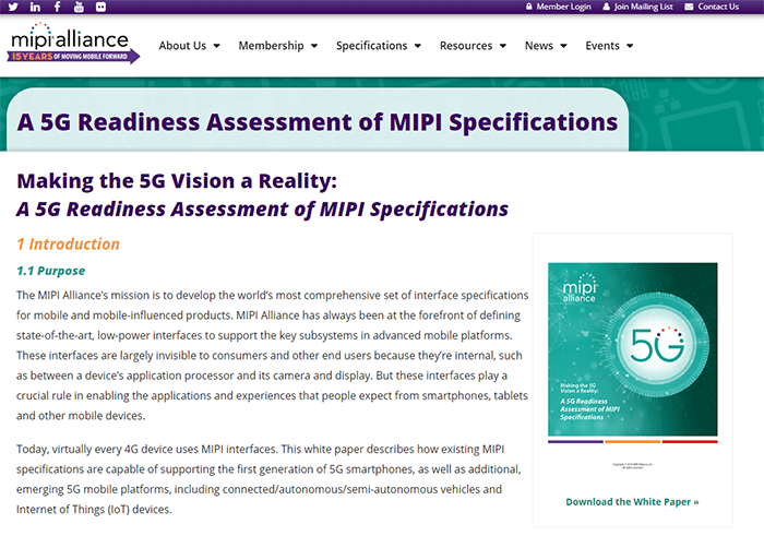 The MIPI Alliance confrimed that all of its specifications relevant for applications in mobile platforms are 5G ready.