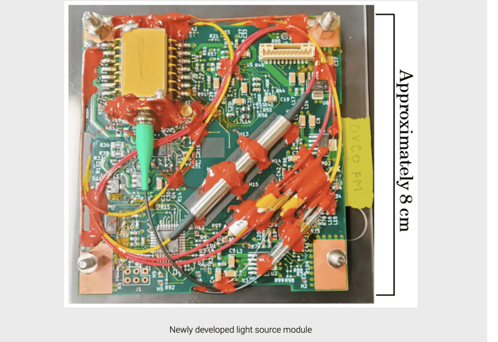 The module, which produces a 1.5-µm wavelength signal, was installed in the OPTIMAL-1 nanosatellite developed through an industry-academia collaboration and released from the International Space Station (ISS) on January 6. The use of a nanosatellite enabled the demonstration to be carried out faster and at lower cost than using a conventional large satellite.