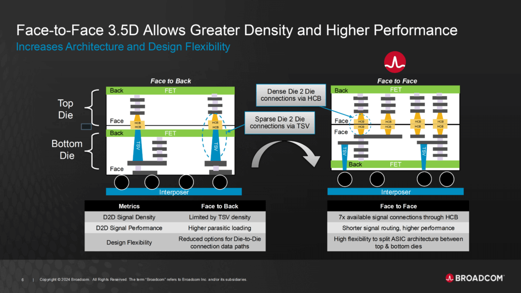 • Enhanced Interconnect Density: 7x increase in signal density compared to Face-to-Back (F2B) stacking.