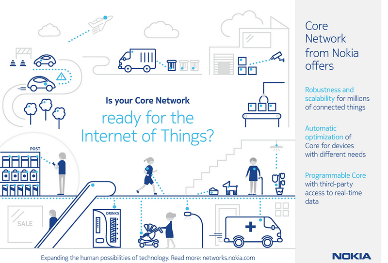 Nokia Networks launched its IoT connectivity solution for LTE core and radio networks.Currently, mobile networks are primarily optimized for smartphone traffic. IoT applications are expected to bring new requirements for the network infrastructure, such as the number and type of connected devices, as well as different traffic patter.