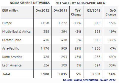 Nokia Siemens Networks reported its best quarter ever in Q4 2012 with an operating profit margin of 14.4% and rebounding sales in North America and Asia Pacific.