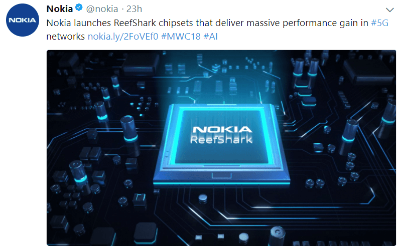 Henri Tervonen, CTO of Nokia Mobile Networks and head of R&D Foundation said: “With ReefShark, Nokia has created a clear competitive advantage. Its combination of power, intelligence and efficiency make it ideally suited to be at the heart of fast arriving 5G networks.”