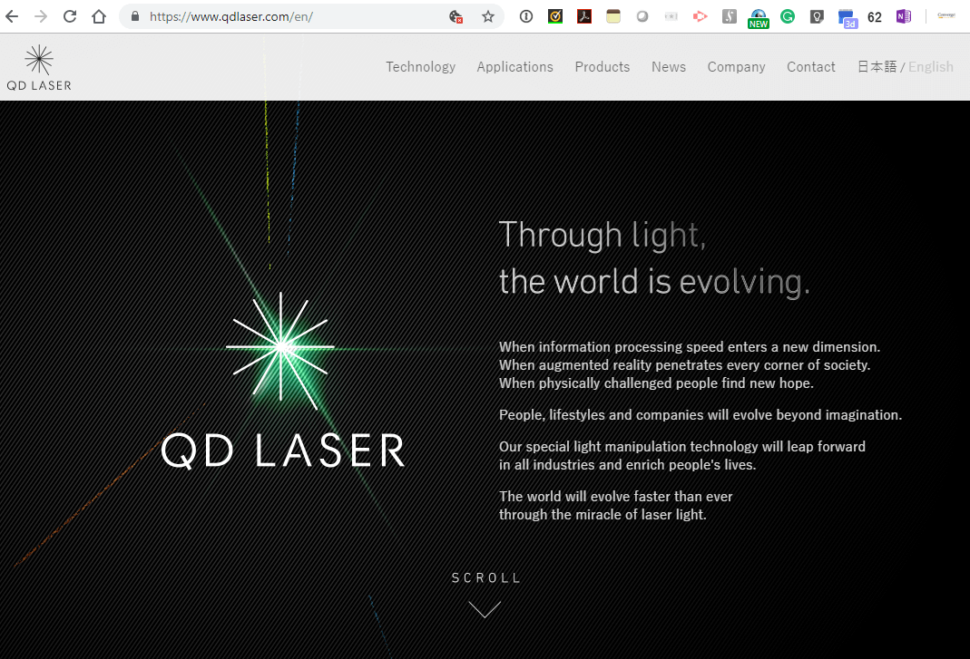 QD Laser, which is an offshoot of Fujitsu and was founded in 2006, is based in Kawasaki City, Kanagawa, Japan. The company is leveraging nanocrystal technology for the mass production of quantum dot lasers capable of operating stably even under high temperatures. In 2018, QD Laser applied its advanced technologies to install a compact laser projector with extremely small output into a spectacle-type device, and successfully commercialized the world’s first retinal scanning laser eyewear that directly projects an image onto the user’s retina for image display. The technology could help patients with ametropia or corneal opacity and weak-sighted individuals.