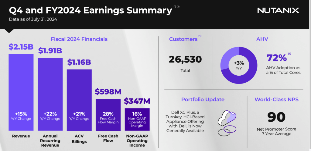 “Our fiscal 2024 results demonstrated a good balance of top and bottom line performance with 22% year-over-year ARR growth, strong free cash flow generation, and our first full year of positive GAAP operating income,” said Rukmini Sivaraman, CFO of Nutanix. “We remain focused on delivering sustainable, profitable growth.”
