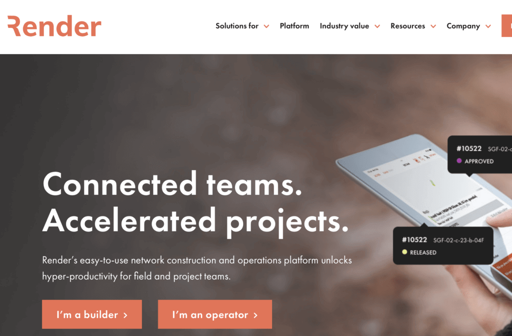 Render Networks, based in Melbourne, Australia, offers a construction management platform optimized for fiber network deployment, focusing on digitizing geospatial data flow in real-time to enhance the efficiency of network construction and management.