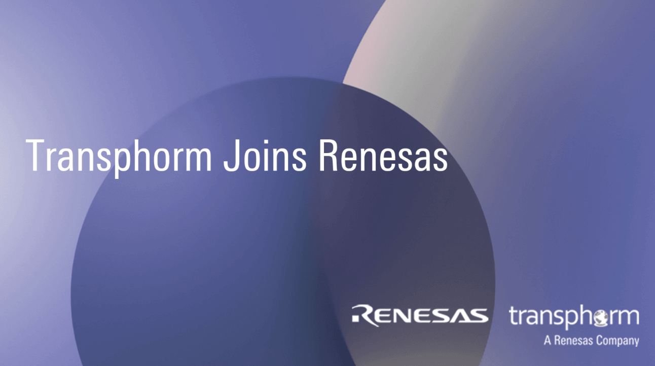 Renesas Electronics has acquired Transphorm (Nasdaq: TGAN), a supplier of gallium nitride (GaN) power semiconductors. With this acquisition, Renesas will immediately begin offering GaN-based power products and related reference designs to meet the rising demand for wide bandgap (WBG) semiconductor products.