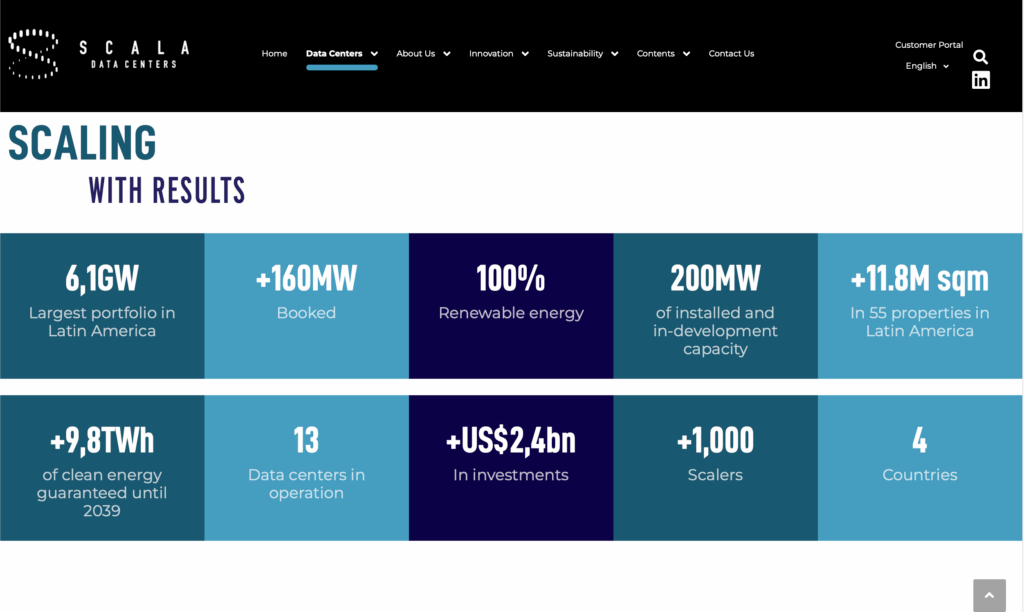 🌐 Company Background: Scala Data Centers, headquartered in São Paulo, Brazil, was established in 2020 by DigitalBridge and has quickly become a leading provider of sustainable hyperscale infrastructure in Latin America. With operations in Brazil, Chile, Mexico, and Colombia, the company is investing billions to expand its capacity toward 500 MW in the near term. Scala’s platform is designed to meet the needs of cloud, AI, and machine learning workloads through modular construction, high‑density architectures supporting up to 70 kW per rack, advanced cooling systems, and a commitment to 100% renewable energy, achieving industry‑leading efficiency with power usage effectiveness targets below 1.2 and zero‑water cooling at key campuses.