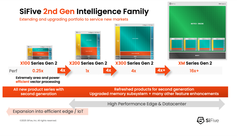 SiFive noted adoption of its X100 series by two Tier 1 U.S. semiconductor companies and expects first silicon from the Gen 2 lineup in Q2 2026. The company will showcase the new portfolio at the AI Infra Summit in Santa Clara this week.