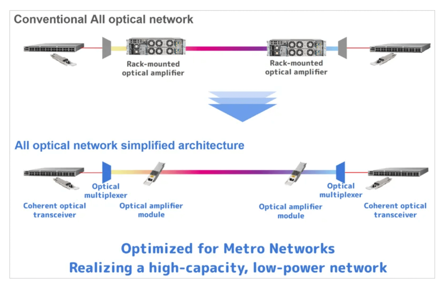 The metro network design combines Cisco’s routed optical network architecture with SoftBank’s simplified optical multiplexing system. It uses Cisco’s 400G-capable routers equipped with Silicon One Q200 chips and OpenZR+ coherent transceivers for direct optical interconnects. This eliminates intermediate transponders and amplifiers, enabling compact, power-efficient infrastructure that can scale to 6.4 Tbps per link. SoftBank’s custom passive optical multiplexer and Cisco’s pluggable Open Line System further reduce rack space and power requirements, simplifying deployment across Japan’s dense metro footprint.