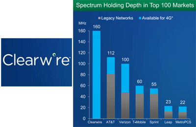 - Clearwire holds the largest spectrum portfolio in the U.S. but in upper bands. Its spectrum is an average 163 MHz in the top 100 U.S. markets.