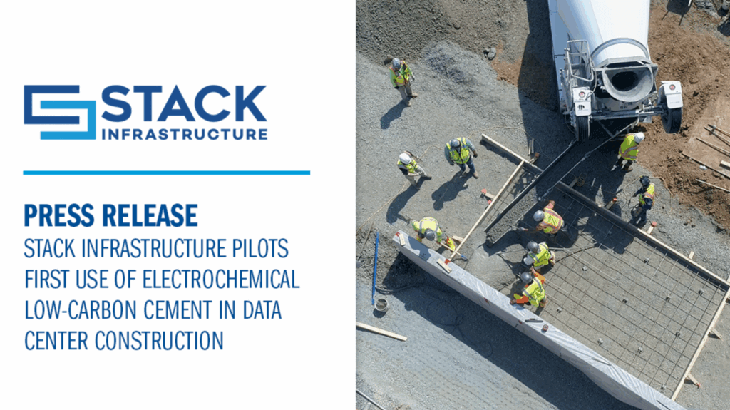 - STACK and Sublime piloted the first electrochemical low‑carbon cement pour in the data center industry
