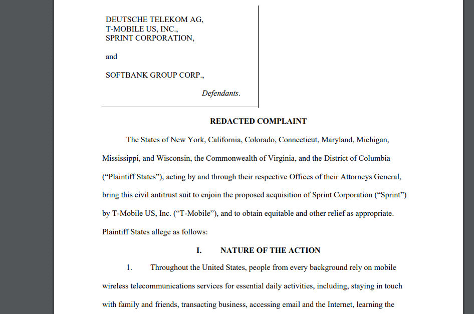 “When it comes to corporate power, bigger isn’t always better,” said Attorney General James. “The T-Mobile and Sprint merger would not only cause irreparable harm to mobile subscribers nationwide by cutting access to affordable, reliable wireless service for millions of Americans, but would particularly affect lower-income and minority communities here in New York and in urban areas across the country. That’s why we are going to court to stop this merger and protect our consumers, because this is exactly the sort of consumer-harming, job-killing megamerger our antitrust laws were designed to prevent.”