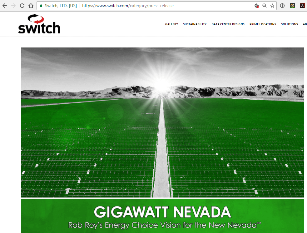 “Climate scientists have repeatedly warned that we must move to renewable energy as rapidly as possible, but many monopoly utilities continue to hold us back from making this transition,” said Gary Cook, Senior IT Sector Analyst and Energy Campaigner at Greenpeace.  “Gigawatt 1 shows that when Switch and other leading companies don’t take ‘no’ for an answer, they can work together and kick open the door to large-scale sources of renewable energy that are better for the planet, and better for the economy in Nevada.”