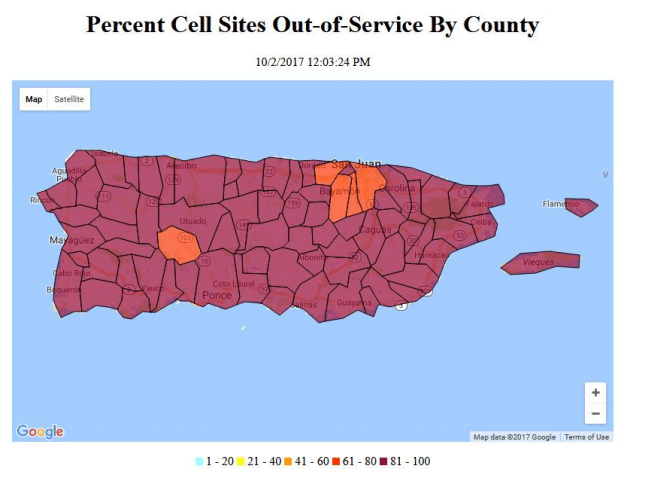The FCC continues to post a daily outage report but has not yet convened a public hearing into the disaster, nor has it speculated as to when the public should expect services to be restored. Claro (America Movil), AT&T, T-Mobile and Sprint are the major cellular operators serving Puerto Rico.