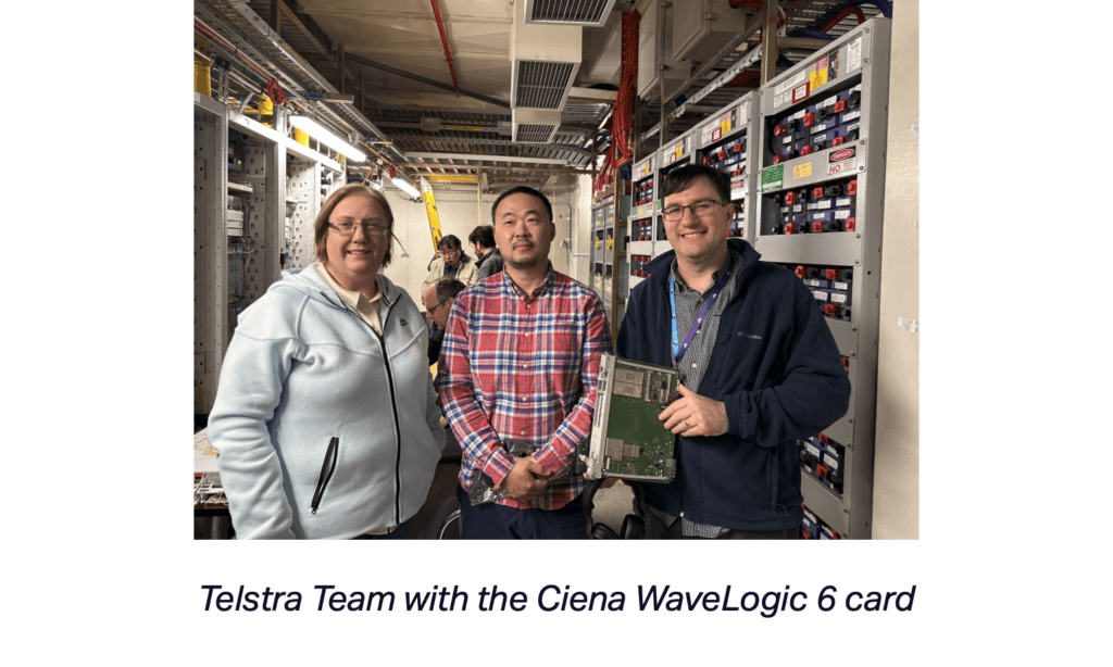 Telstra successfully transmitted 1.6 Tbps over a single optical channel across 700 km using Ciena’s WaveLogic 6 Extreme (WL6e) technology. The trial took place on Telstra’s live network between Melbourne and Canberra, one of Australia’s highest-capacity routes.