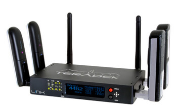 Teradek introduced a rugged, mobile bonded cellular hotspot that provides six USB ports for 3G/4G modems, dual Ethernet ports, and built-in dual band a/b/g/n MIMO WiFi. The aggregated uplink can be any combination of 3G/4G service, satellite, terrestrial microwave, etc. The device is powered with the built in AC/DC adapter, or through a V-mount or Anton Bauer Gold-mount adapter for mobile power. MIMO Wi-Fi enables the device to be placed in locations with optical signal reception.