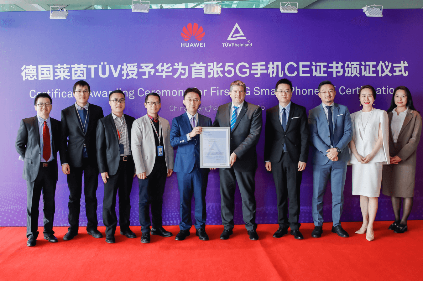 TUV Rheinland issued the first-ever CE RED certificate for a Huawei 5G mobile phone.